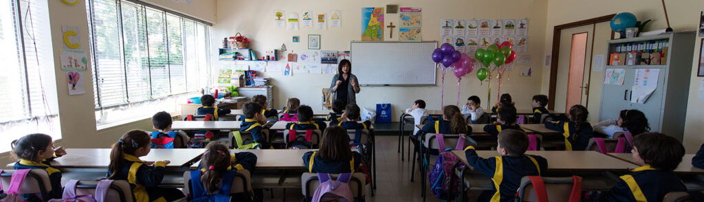 Si favorisce un approccio «ludico»; la maggior parte delle lezioni si svolgono in palestra dove gli alunni imparano ad eseguire istruzioni in inglese – ossia imparo giocando.